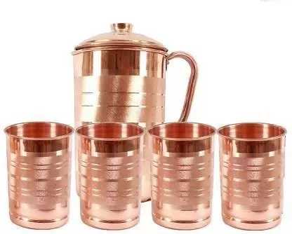 3 NO JUG 4 GLASS 1 LITTER COPPER WATER JUG AND 250 ML COPPER GLASS (Pack of 5)