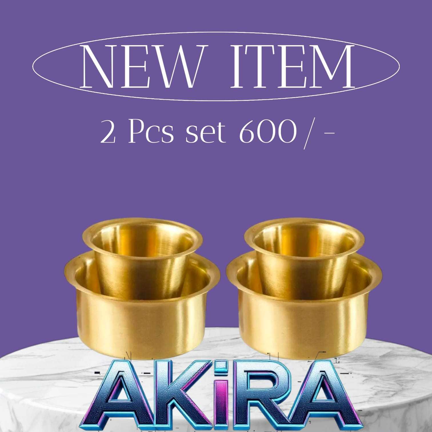 AKiRA Pack of 2 Brass Pure Brass Dabra Set – Traditional South Indian Coffee Serving (Gold, Cup and Saucer Set)